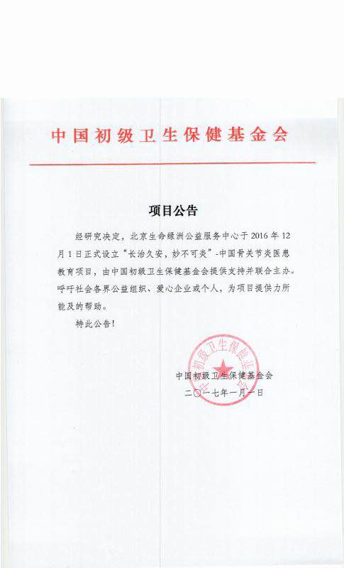 “长治久安,妙不可炎” 中国骨关节炎医患教育项目