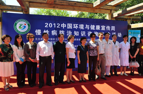 为贯彻落实中国农工民主党中央委员会、教育部、科学技术部、国土资源部、环境保护部、住房和城乡建设部、水利部、农业部、卫生部、国家林业局 “关于联合举办2012(第五届)中国环境与健康宣传周活动的通知”, 2012年6月16日上午, 由中国农工民主党中央社会服务部、中国农工民主党北京市委会、中国初级卫生保健基金会、白求恩基金管理委员会主办,中国农工民主党北京市东城区委会、北京市东城区交道口街道办事处、北京市东城区交道口街道交东社区承办的中国环境与健康宣传周“慢性病防治知识咨询义诊”活动,在北京市东城区交道口交东社区举行。