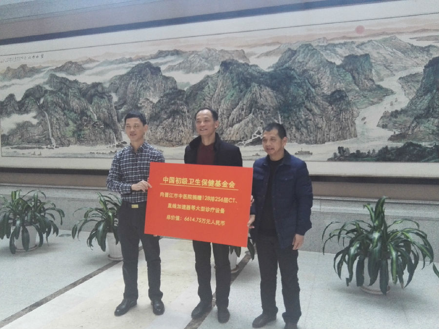 2017年,基金会再次与晋江市中医院签署协议,向该院捐助瓦里安直线加速器IX 一台、飞利浦Brilliance iCT 128排256层一台、西门子ACUSON S3000 超声诊断系统 5台,市场总价值7000余万元。