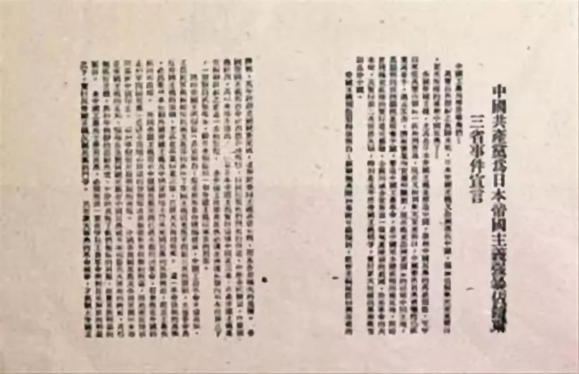 《为日本帝国主义强暴占领东三省事件宣言》