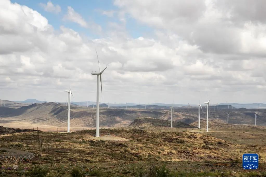 这是在南非北开普省德阿镇拍摄的中国龙源电力集团南非公司运营的德阿风电项目风机(2021年11月22日摄)。新华社记者 吕天然 摄