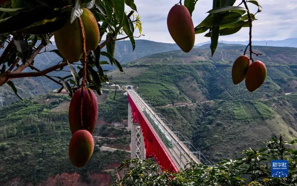 复兴号列车通过中老铁路元江特大桥(2022年6月1日摄)。新华社记者 江文耀 摄
