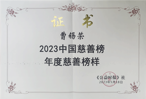 中国初级卫生保健基金会理事长曹锡荣投身公益事业以来,一直关注我国卫生保健领域公益事业,带领中国初级卫生保健基金会为健康中国努力奔走,为实现传承几代人的初保梦而奋斗。于他而言,慈善既是发心也是信仰。他长期致力于提升我国县级医疗机构服务能力建设,致力于支持我国重大疾病科研及基础研究,致力于推动医师公益事业发展。无论是在海拔四千多米的青海杂多捐赠物资还是西藏高原那曲昌都的藏医藏药带队考察;无论是调研云南怒江州的乡村卫生室建设还是在太行山区捐赠“行走的医院”;无论是支持武汉保卫战的方舱医院建设还是协调捐赠新疆伊犁州的核酸检测设备;无论是与陈冯富珍合作消除病毒性肝炎还是和张文宏合作治疗耐多药肺结核;无论是连续组织发起四届中国医师公益大会还是积极筹备首届乡村医生公益大会等,都无不围绕着人人享有卫生保健,助力健康中国建设;无不体现出一名公益人的博大爱心、为国为民的使命与担当。